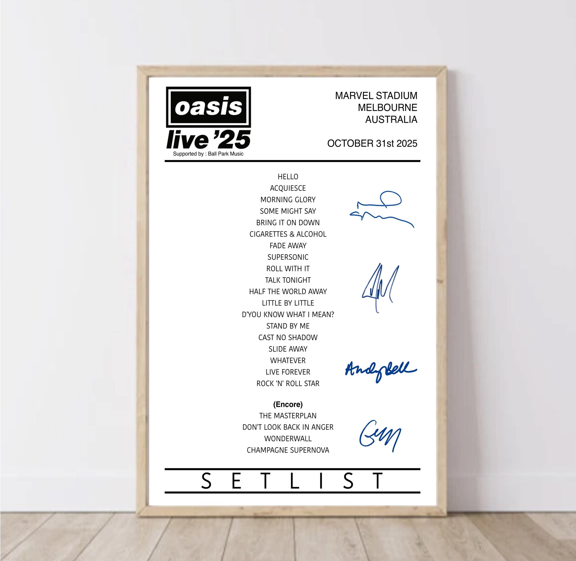 Oasis | Live '25 International Tour Setlist | Digital Download / A5 A4 A3/+ Poster