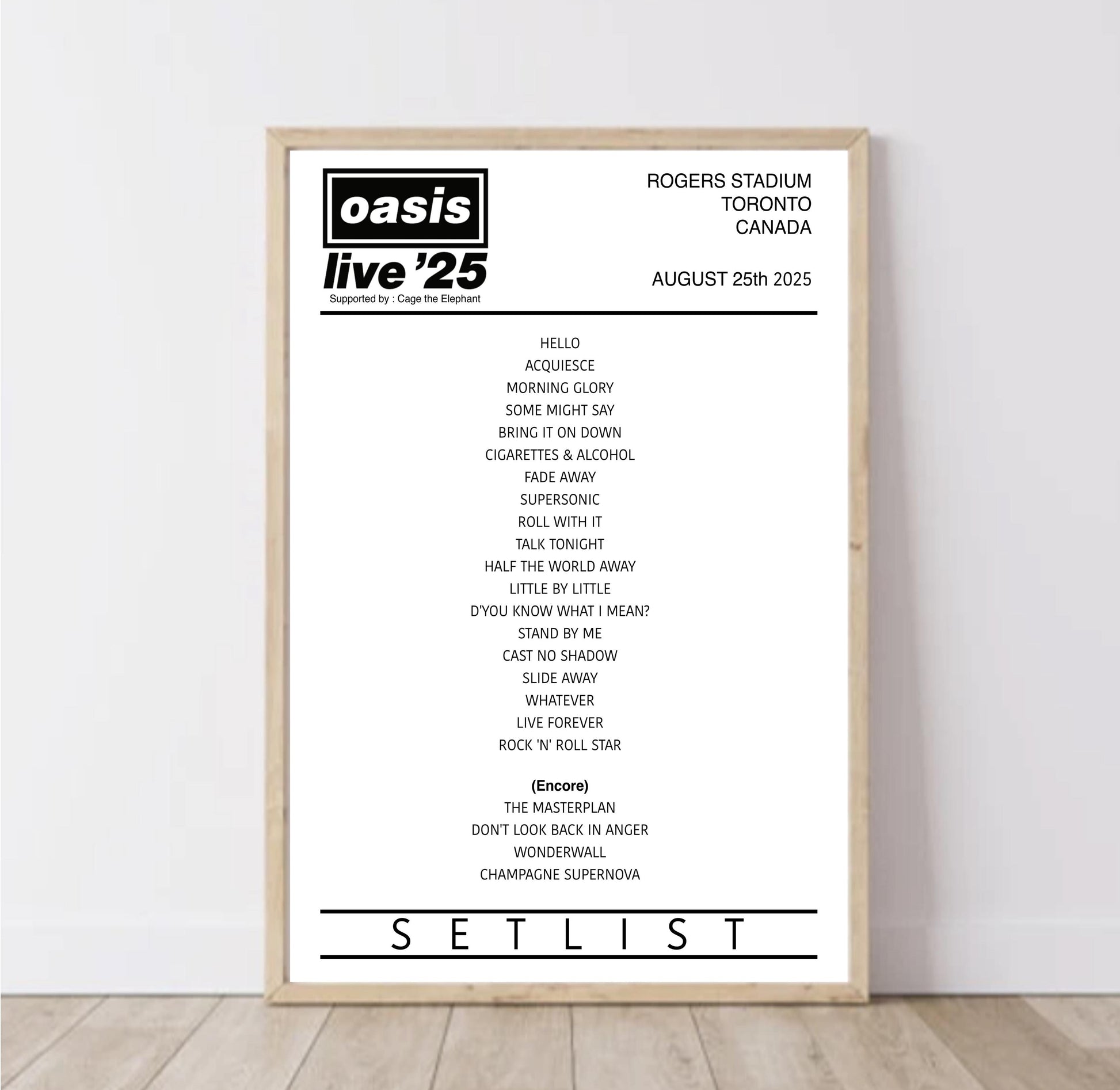 Oasis | Live '25 International Tour Setlist Poster | Digital Download / A5 A4 A3/+ Print | Merch | Custom Poster | Wall Art Print | Home Decor